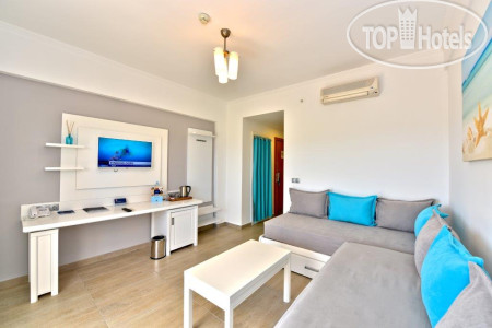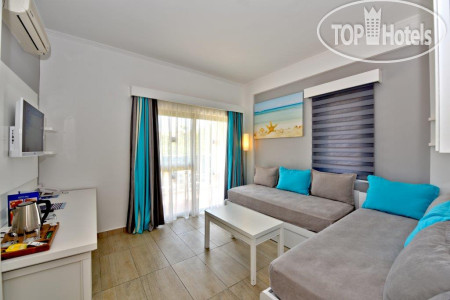 Однако этот отель однозначно получше некоторых пятерок. Номер у нас был Джуниор Сьют, на сайте туроператора было указано, что ремонт проводился в 2015 году, переживала что будет убитый, но нет, вся мебель, сантехника и ремонт свежие. Интерьер в греческом стиле, самое оно, мы очень скучаем по Греции. Уборка восхитила как никогда. Мы уборщицу не встретили ни разу, настолько деликатно она убиралась, именно когда мы уходили на море, после обеда в номере всегда было идеально прибрано, и почти каждый день менялось белье. Чаевые оставляли пару раз и в конце, когда уезжали, то есть человек и без чаевых прекрасно выполняет свою работу.