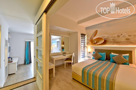 По прилёту в Даламан нас встретил индивидуальный трансфер (русских туристов в этом отеле почти нет). Заселили быстро, без проблем. Номер категории "Стандарт" соответствовал описанию – чистый, удобный, всё необходимое было в наличии. Правда, в ванной комнате не было никаких косметических принадлежностей и халатов, но я обратился на ресепшен — и нам сразу бесплатно принесли всё необходимое.