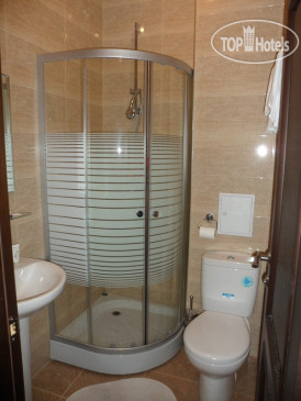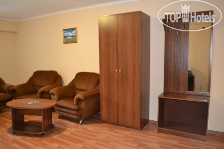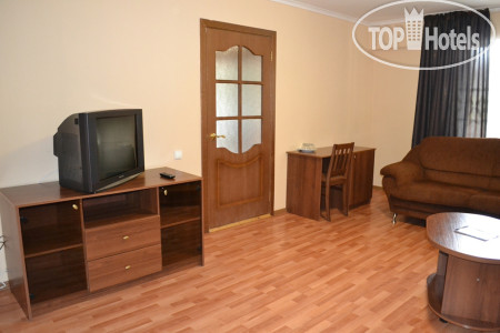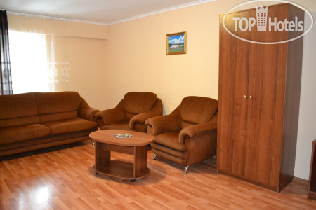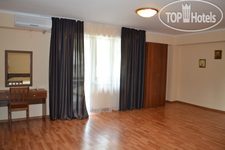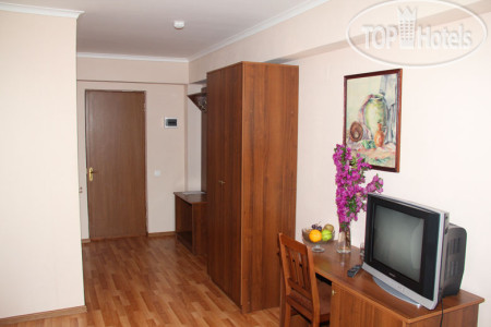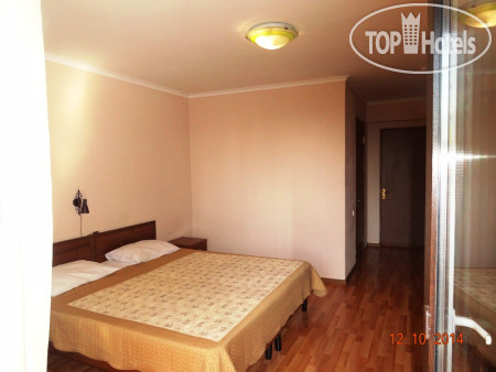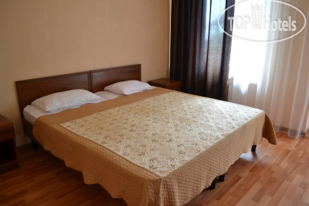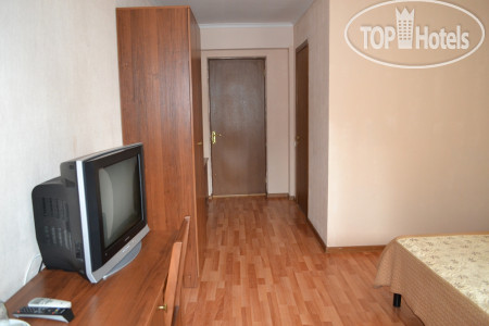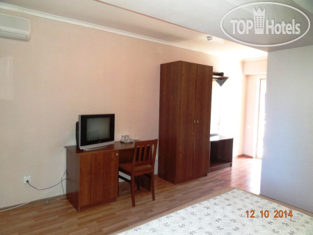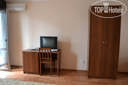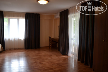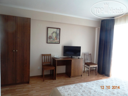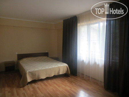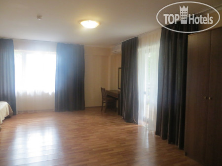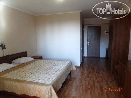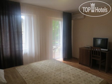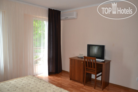 Жили в улучшенном номере 105, с отдельным входом. Номер отличный, двухкомнатный с большой прихожей, с подогреваемыми полами и всем необходимым для комфортного отдыха. Постель очень удобная, белье белоснежное. Халаты, тапочки, пляжные полотенца, большая раскладная сушилка, мини-холодильник, чайный набор - этого нам было вполне достаточно для комфортного отдыха. Единственное, чего очень не хватало, это сеток на окнах.