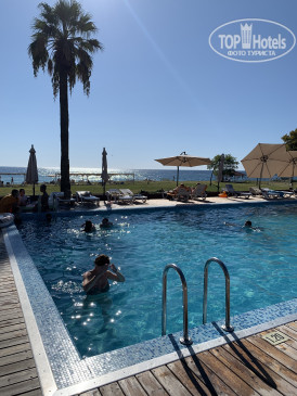 Бассейн на территории отеля классный, все комфортно, детям очень нравилось находится в нем. Помимо моря, в нем проводили много часов. Аниматор Таня, аквааэробику здорово проводит, у нее много активистов и даже мужчины, что старательно в воде выполняют упражнения.