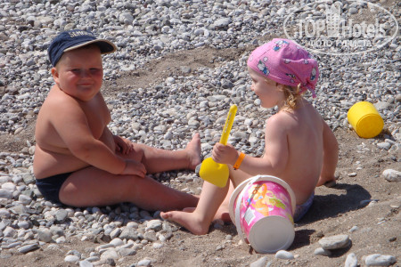 На пляже также есть снек бар, перекусить вполне можно. Также бар с напитками. Пляж-галька, в спец тапочках вообще не проблема.