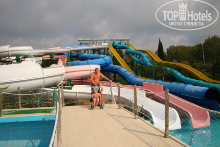 16. Аквапарк отличный - есть детская часть, бассейны общие, волновой бассейн, пенные вечеринки. Большие горки есть, с плюшками и без, во взрослой части. Спасатели особо не следят, не лютуют, видел как проходили и детишки мелкие. Стоят автоматические турникеты перед горками, но иногда глючат - горит зеленый свет, а человек еще едет. За этим лучше следить самим.
