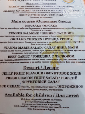 В отеле так же присутствует питание завтраки, питание как во всех отелях (растворимый кофе, соевая, белого цвета ветчина, хлопья, ...), питание производиться в стоящем рядом ресторане: " YIANNA MARIE RESTAURANT", ТАК ЖЕ ЕСТЬ БАР С НАПИТКАМИ НА ПЛЯЖЕ: " YIANNA MARIE BEACH".
