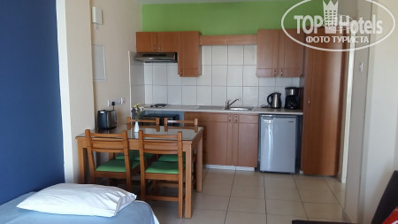 На Кипр прилетаем уже не первый раз. Раньше были с мужем вдвоем, отдыхали и в Аяй Напе и Протарасе. В этот раз прилетели уже с доченькой (1год 11 месяцев). Выбор пал на этот отель ,потому что рядом с пляжем и в номере есть кухня. Ребенку готовили только дома, так как она барышня привередливая. На кухне была 1 кастрюля с крышкой, 1 сковородка без крышки, 1 ковшик, тарелки глубокие и обычные, бокалы, стаканы,чашки, столовые приборы,а также лопатки и тд не было только толкушки, поэтому картофельное пюре вилкой толкли. Плита на 2 комфорки, микроволновка, кофе машина, тостер, маленький холодильник и чайник. Купили только ножик, потому что их ножи были тупые.